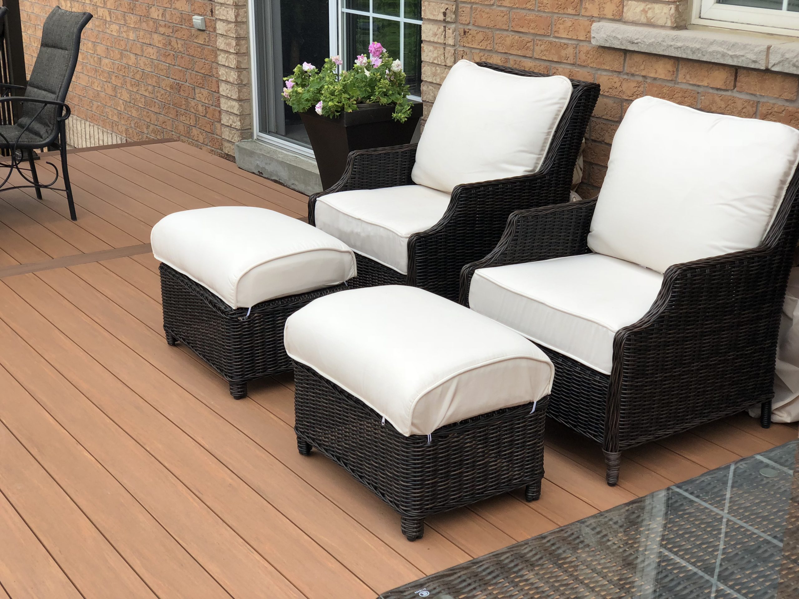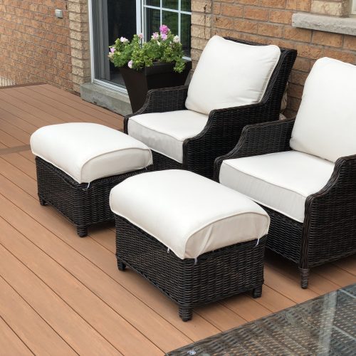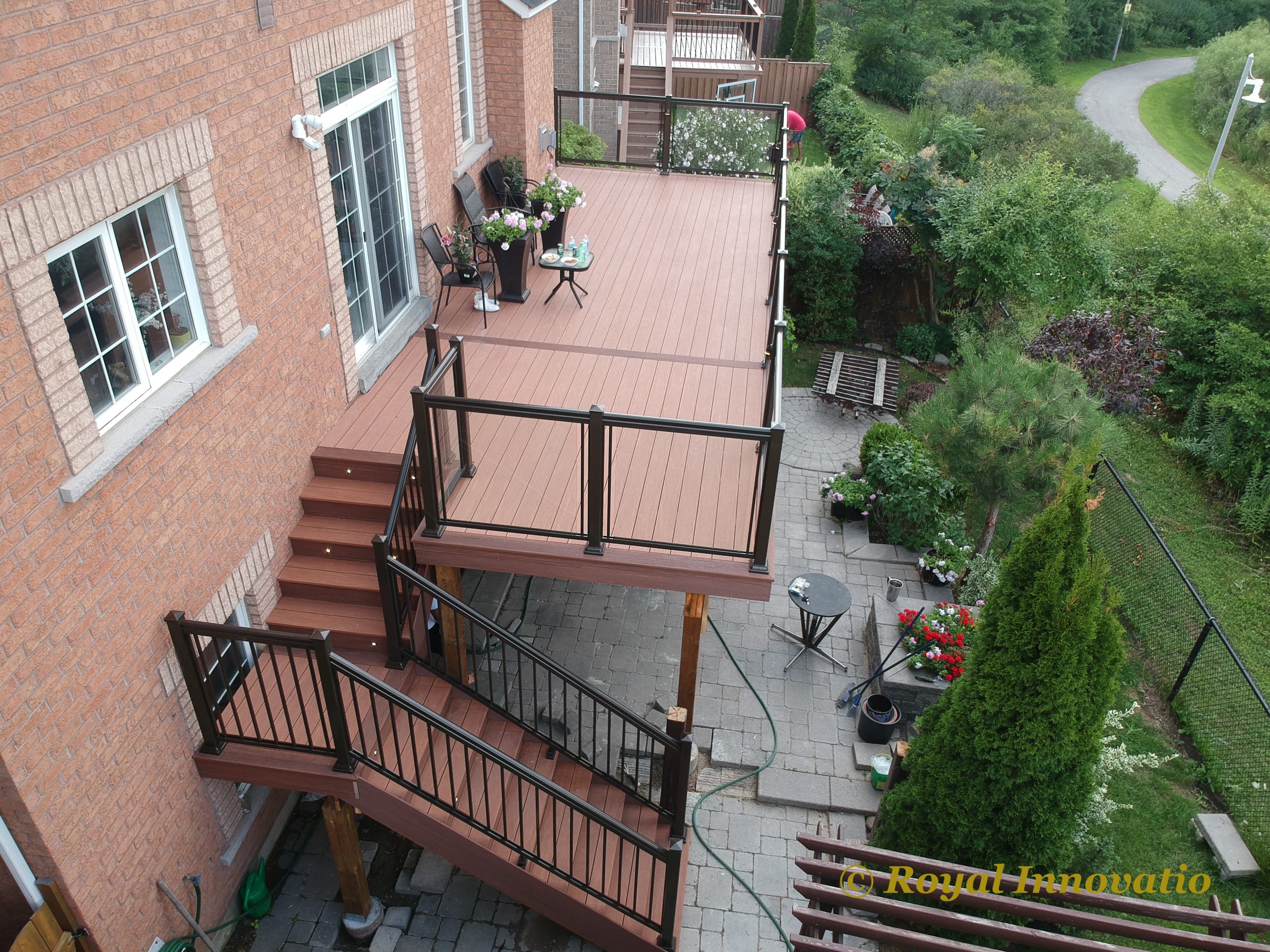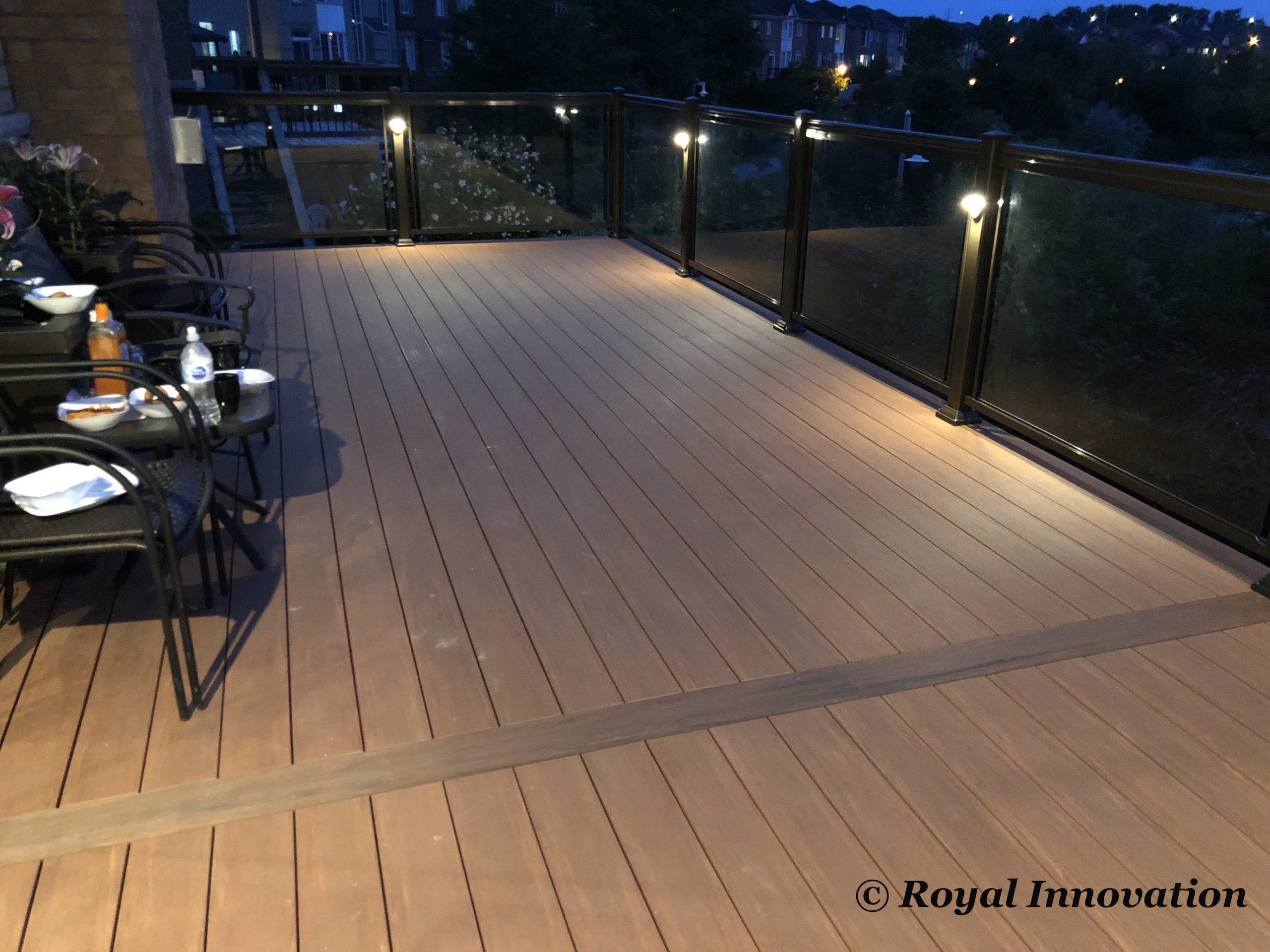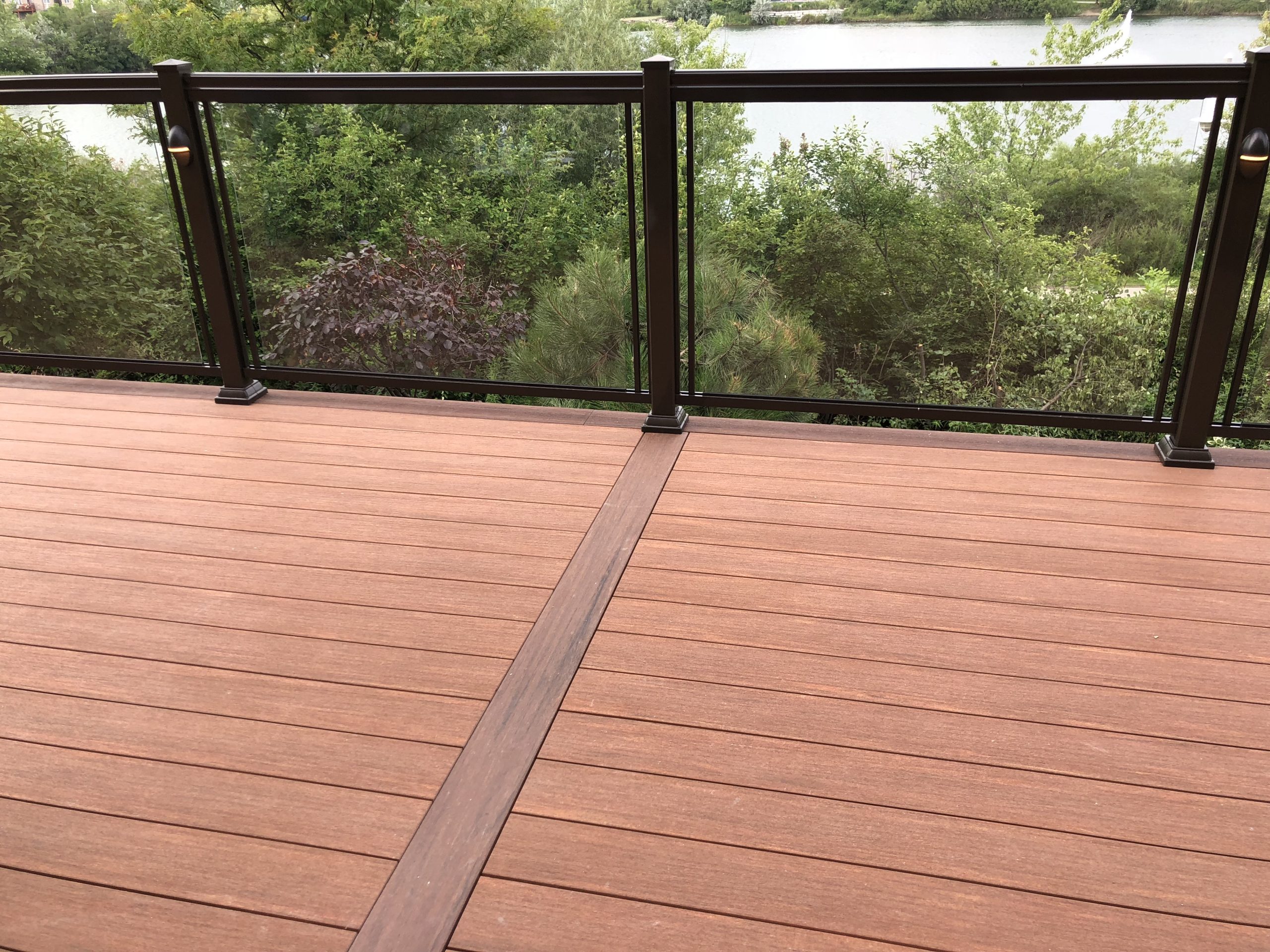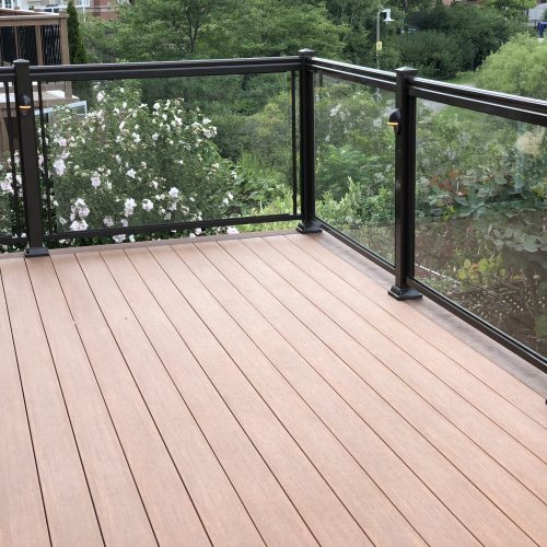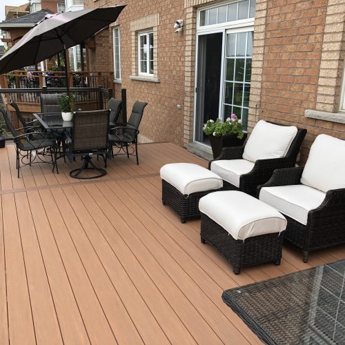 This elevated PVC deck in Richmond Hill was designed to take full advantage of the property’s natural pond view, creating a premium outdoor living space with unbeatable durability and zero maintenance. Built using high-performance PVC decking and a bronze aluminum–glass railing system, the deck offers long-term weather resistance, superior stability, and a sleek, modern aesthetic.