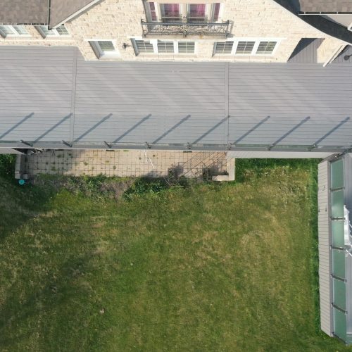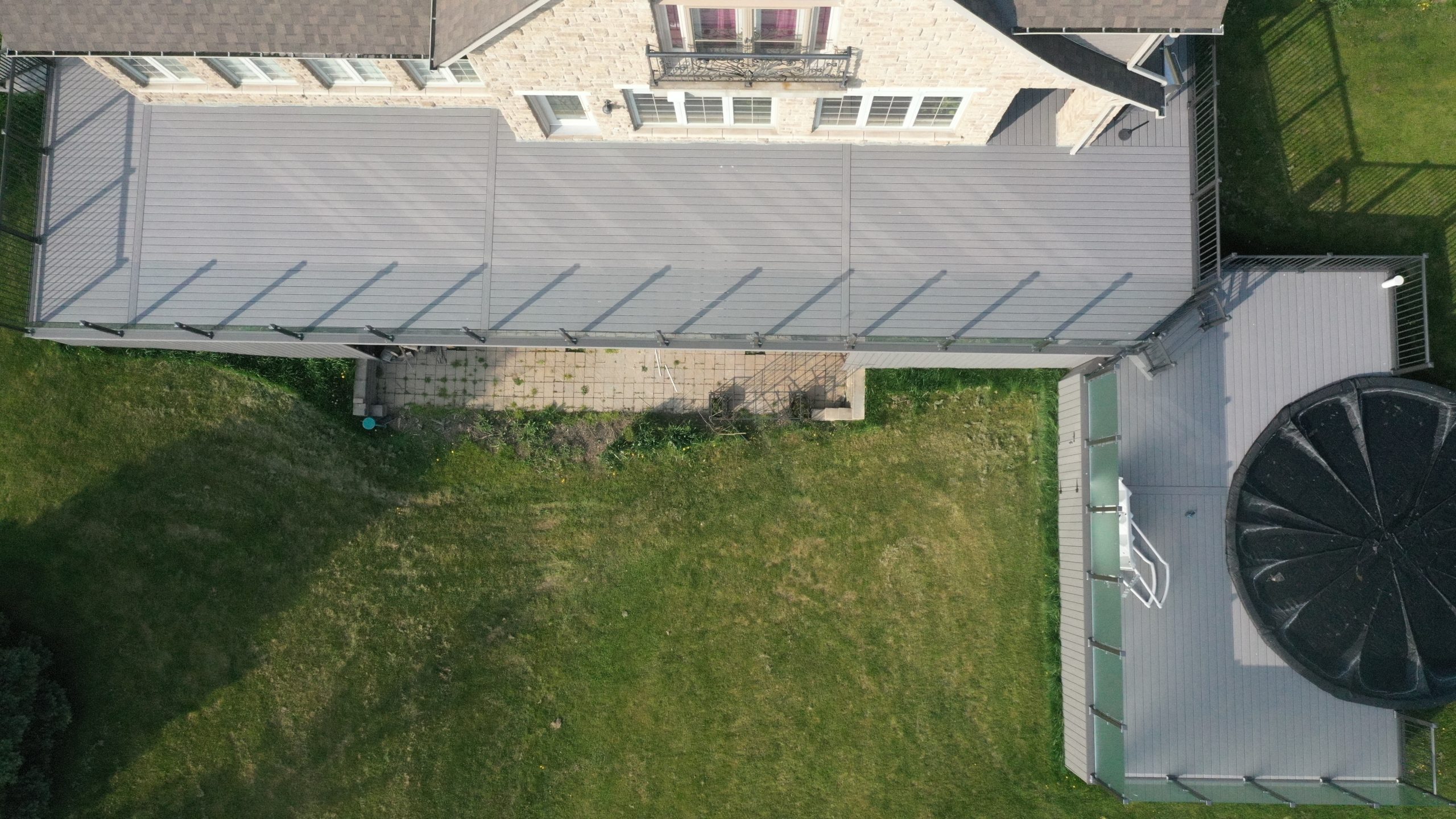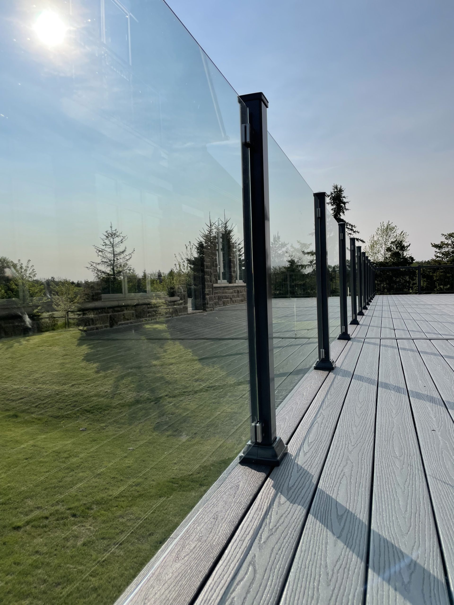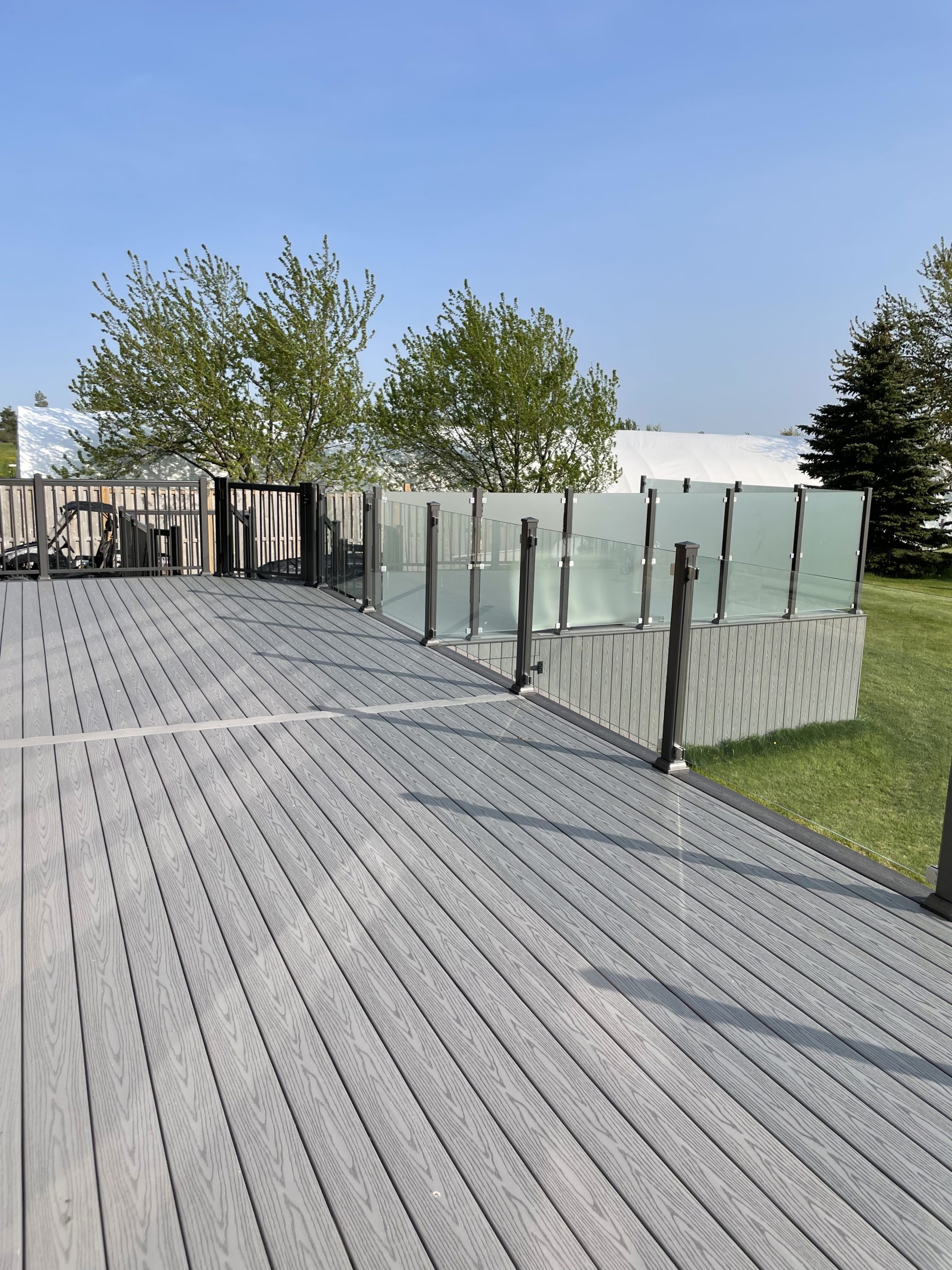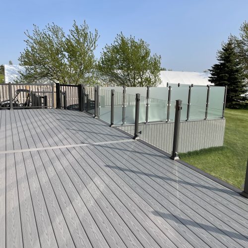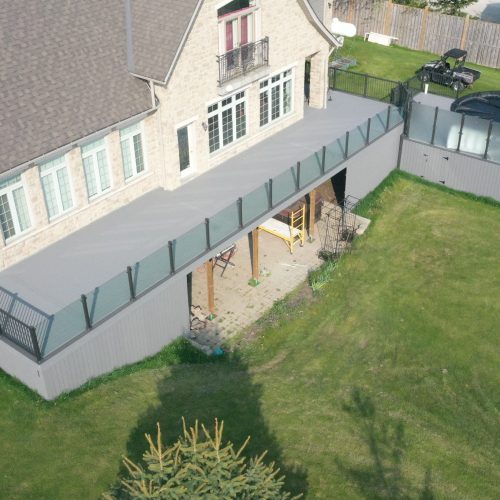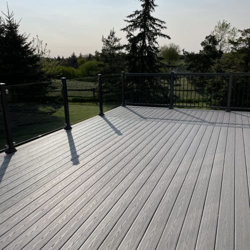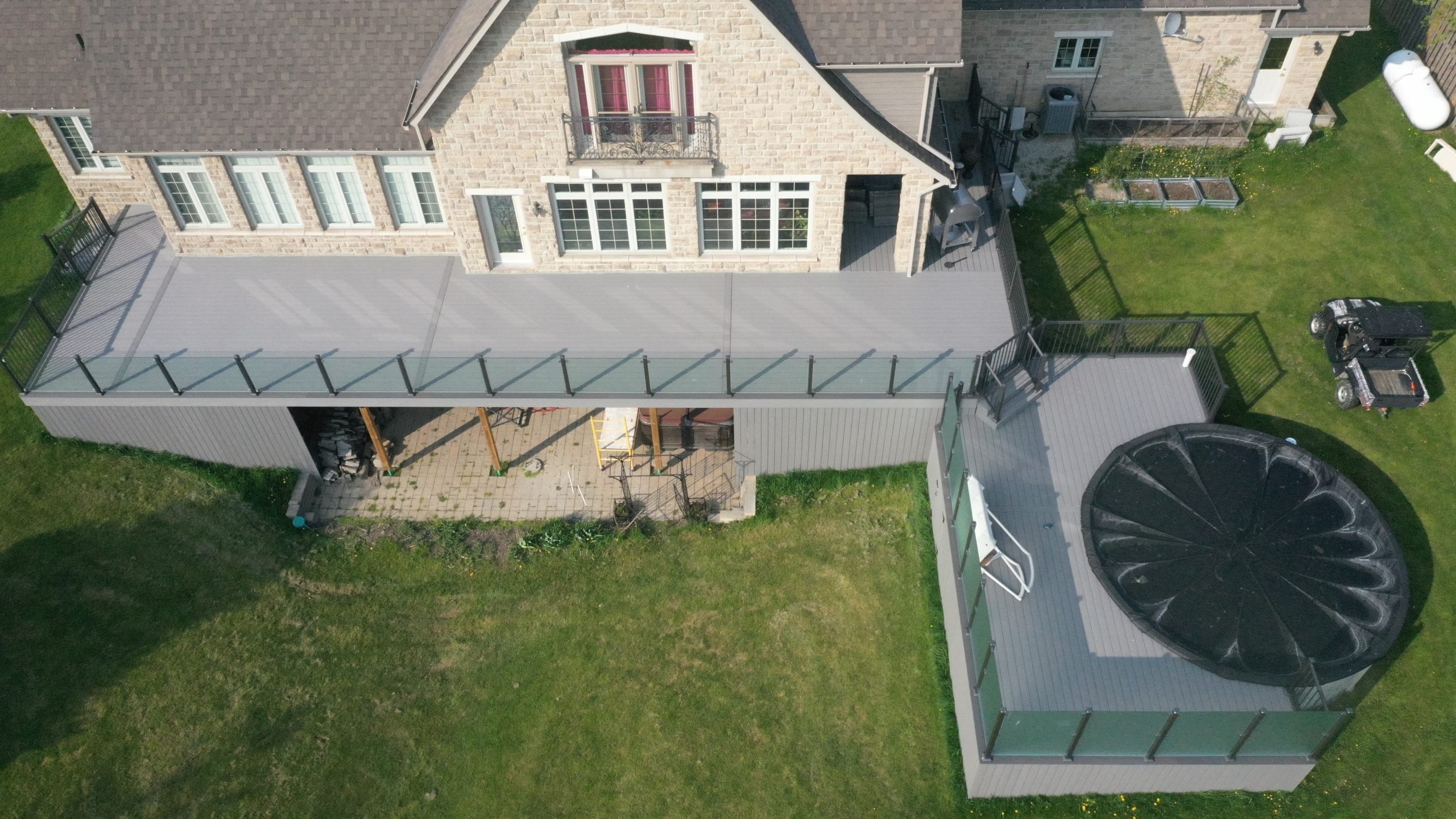 This premium estate home in rural Ontario showcases our expertise in creating sophisticated outdoor living spaces through a multi-faceted composite deck installation that maximizes breathtaking countryside views. Our team designed a comprehensive solution featuring two distinct deck areas connected by a thoughtful layout that perfectly complements the home’s grand architecture.