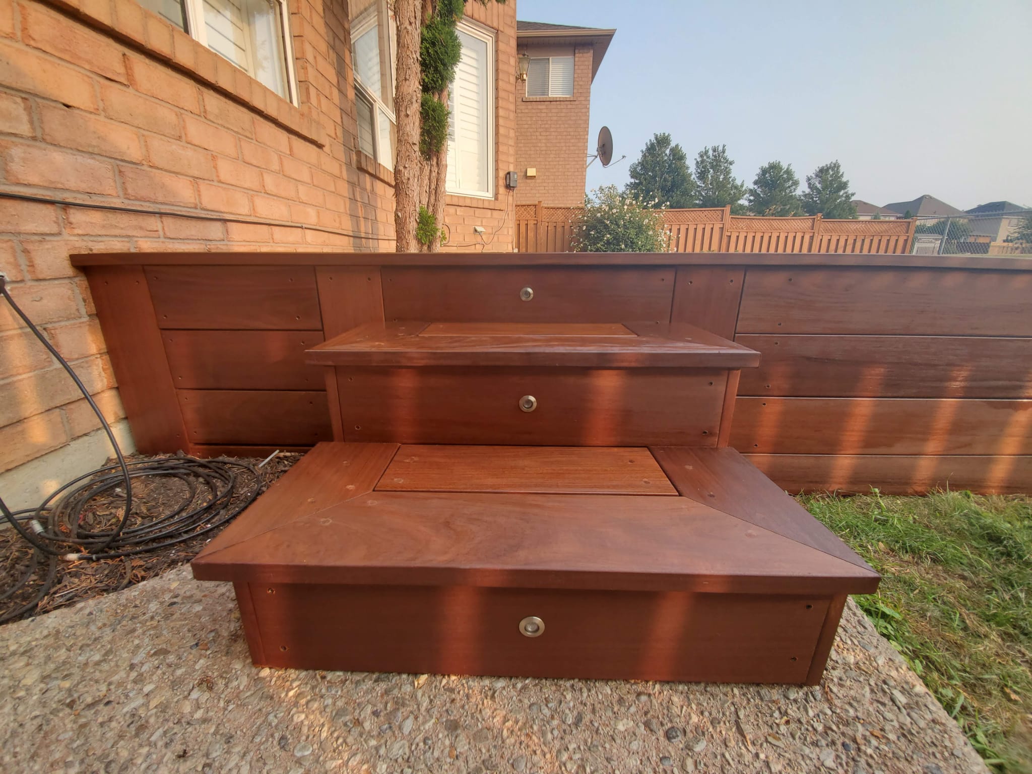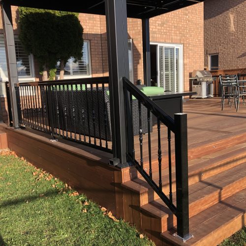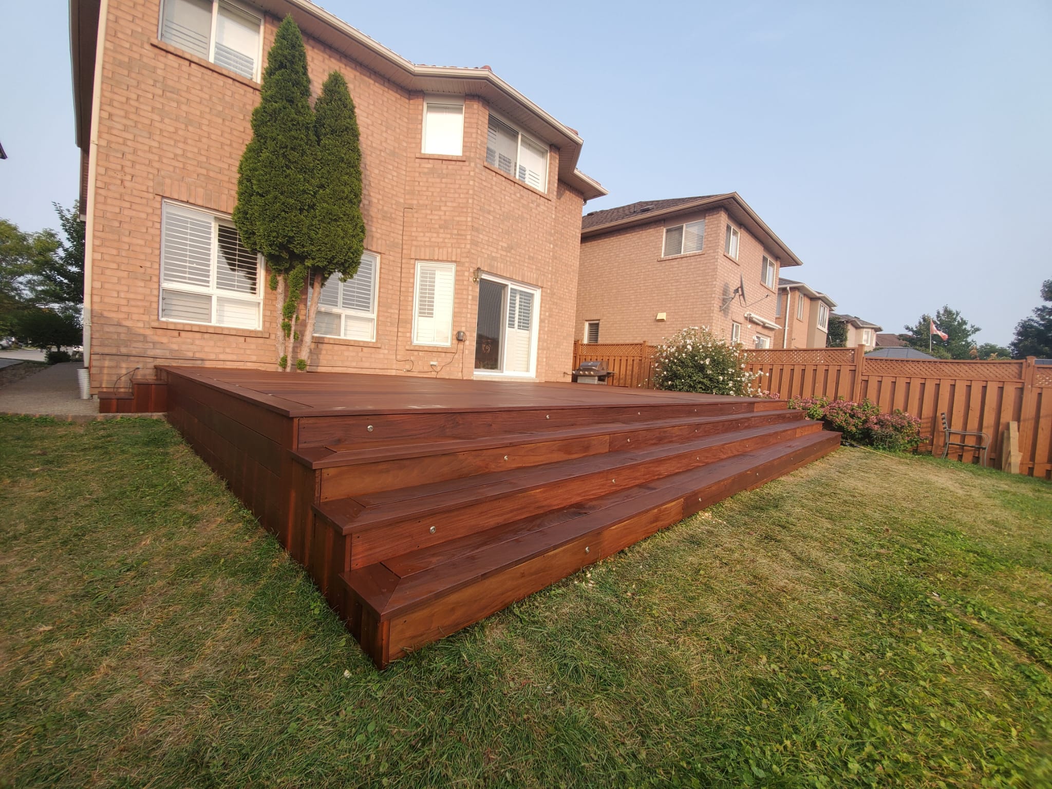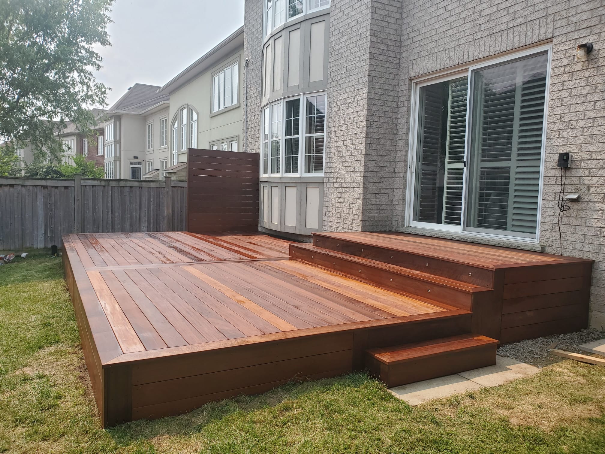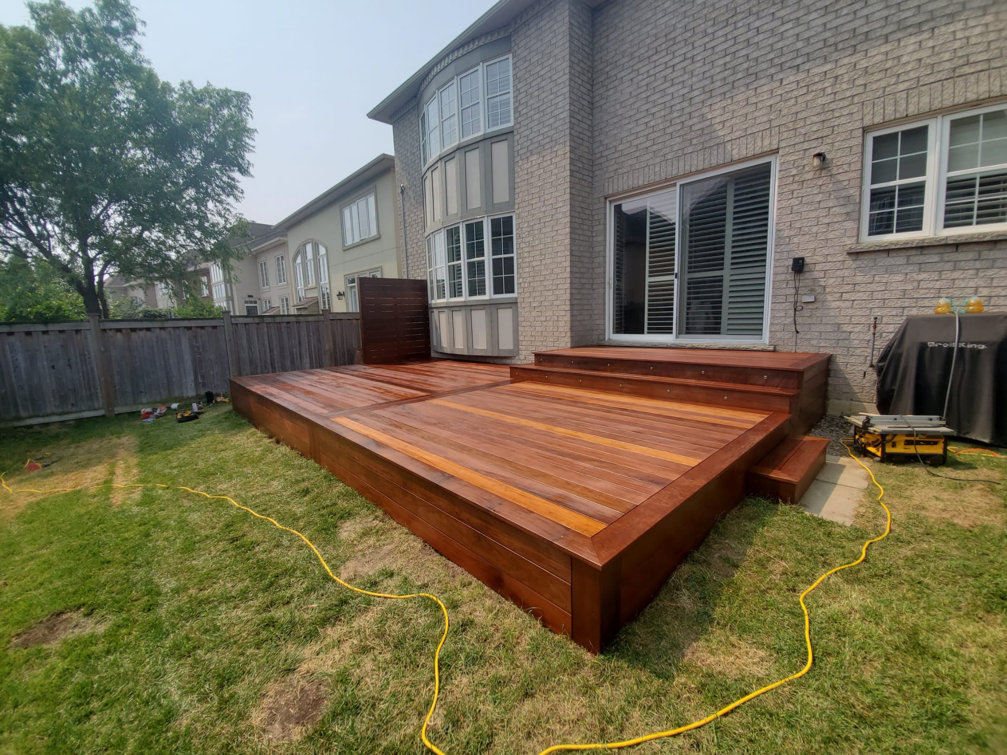 This Aurora suburban residence showcases our approach to all-season outdoor entertainment spaces through the harmonious integration of a luxurious Ipe hardwood deck with a sophisticated aluminum louvered gazebo. The design creates a year-round sanctuary that extends the home’s living area while addressing the variable Ontario climate.
