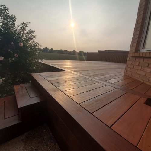 The timber installation utilizes Brazilian Ipe – often called “ironwood” for its exceptional density and resilience – providing unmatched durability against rot, insects and weathering. The clean-lined design features flush step construction and precision mitered corners for a seamless appearance that highlights the material’s natural elegance.