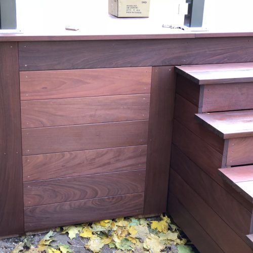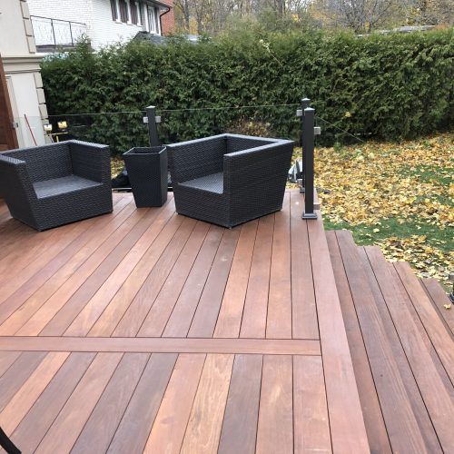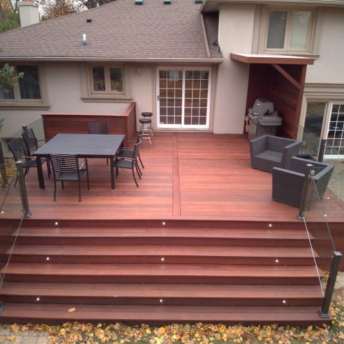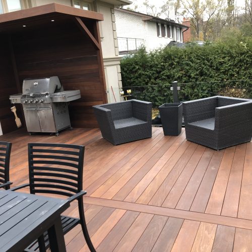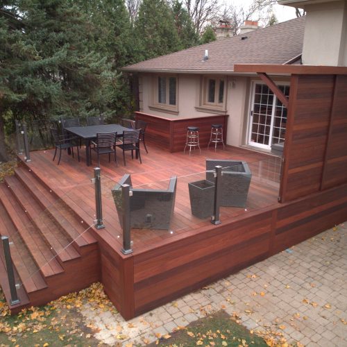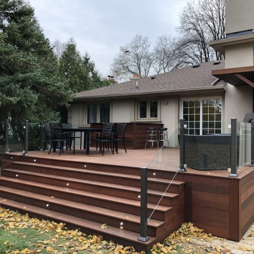 This North York property features a premium custom Ipe deck that perfectly complements the home’s architecture. Our deck contractors selected Brazilian Ipe deck for its exceptional durability in Toronto’s climate and striking natural beauty.