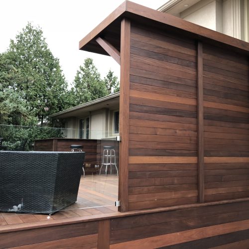 Executive Natural IPE Wood Deck with Custom Kitchen Canopy