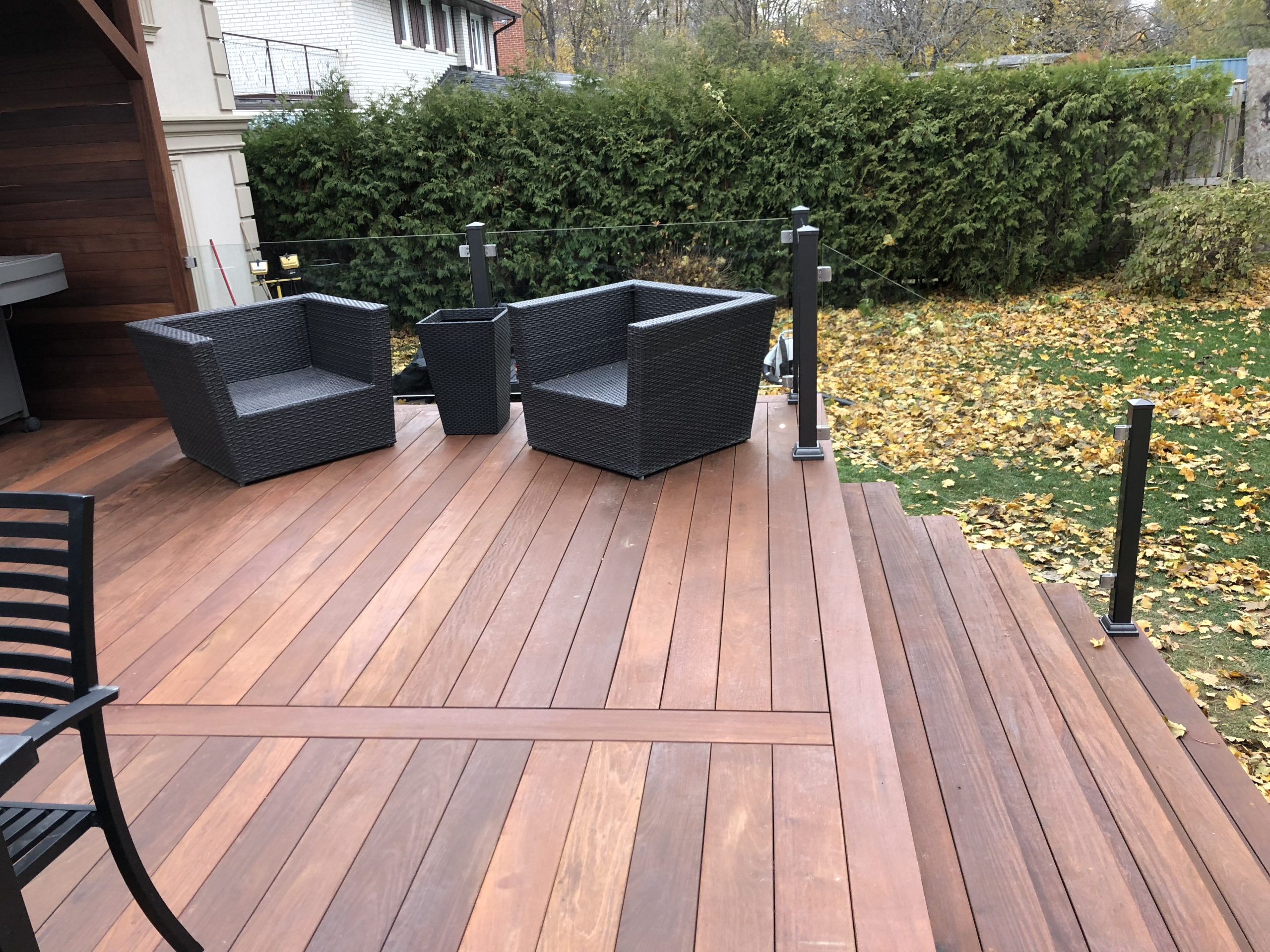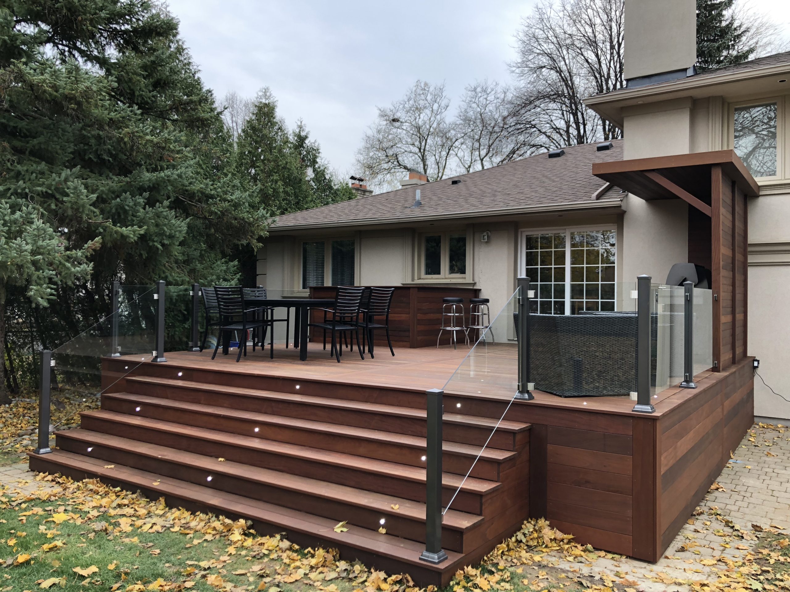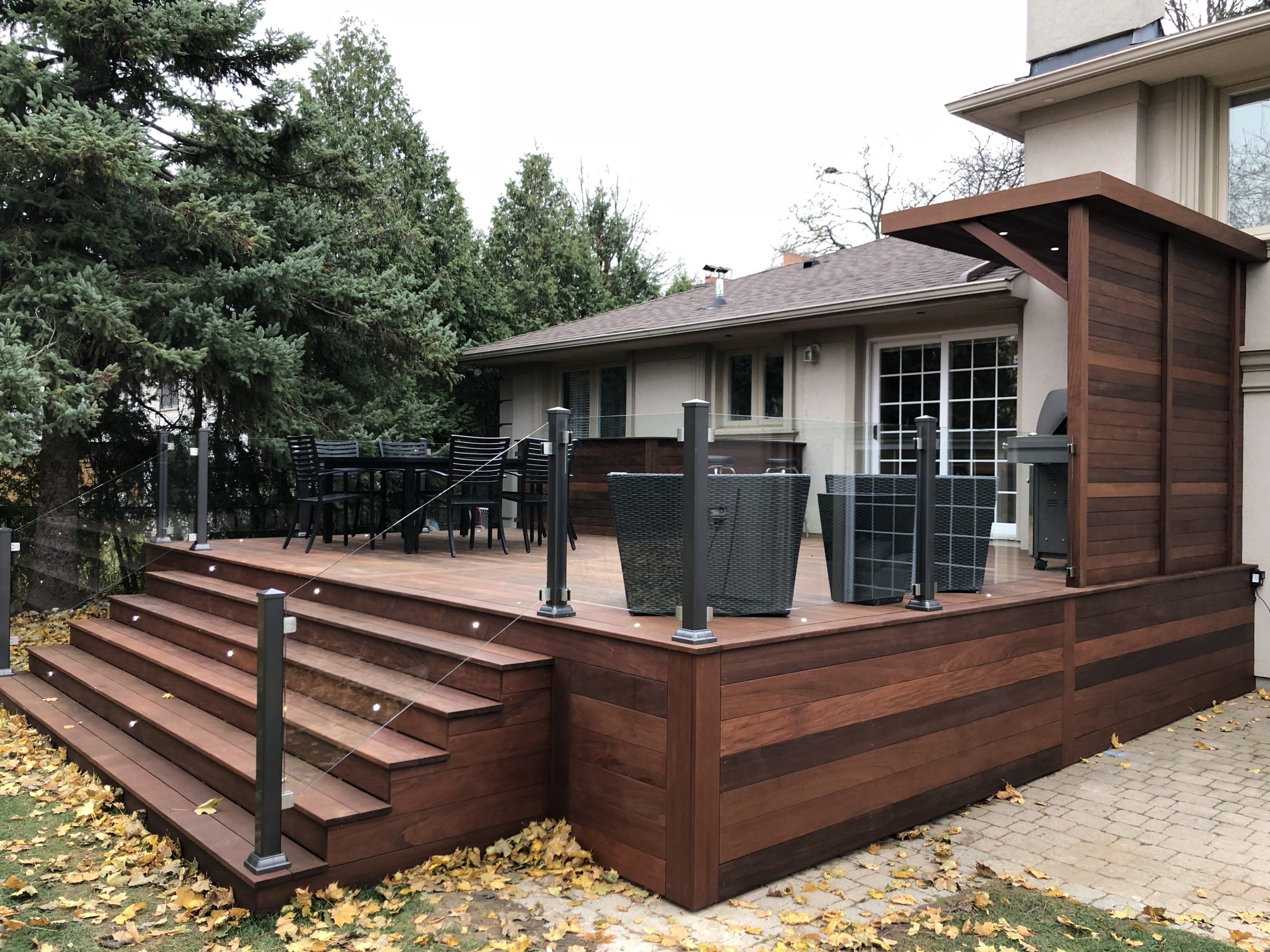 This North York property features a premium custom Ipe deck that perfectly complements the home’s architecture. Our deck contractors selected Brazilian Ipe deck for its exceptional durability in Toronto’s climate and striking natural beauty.