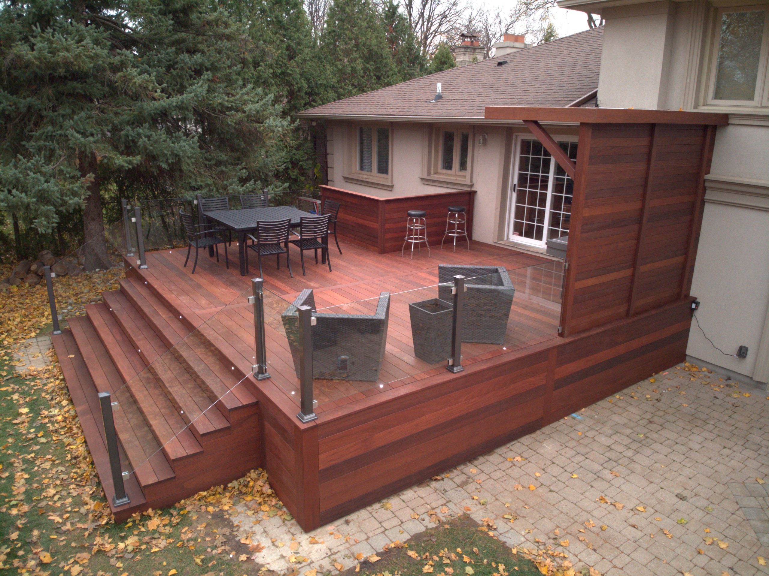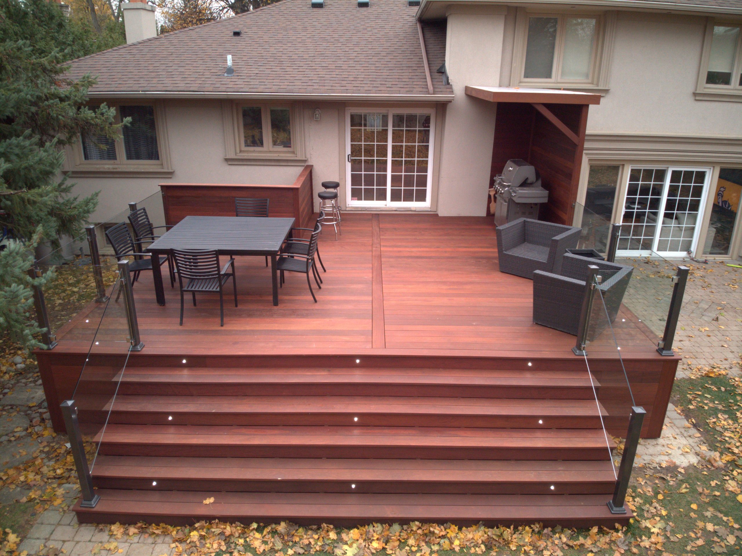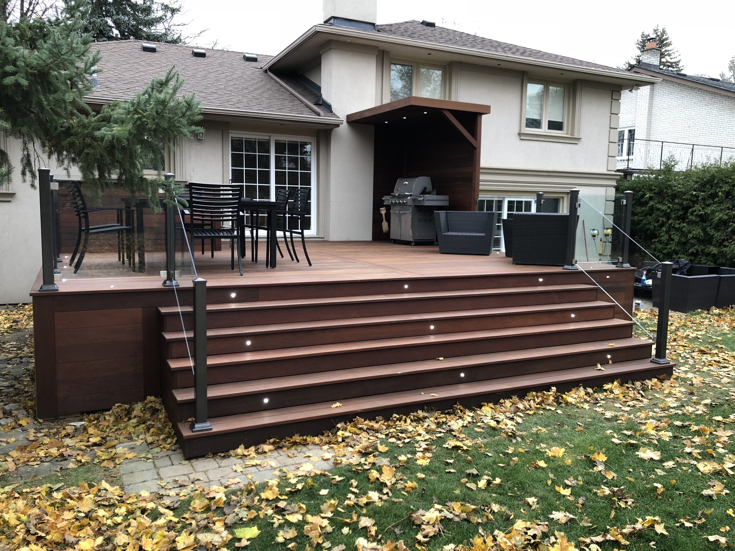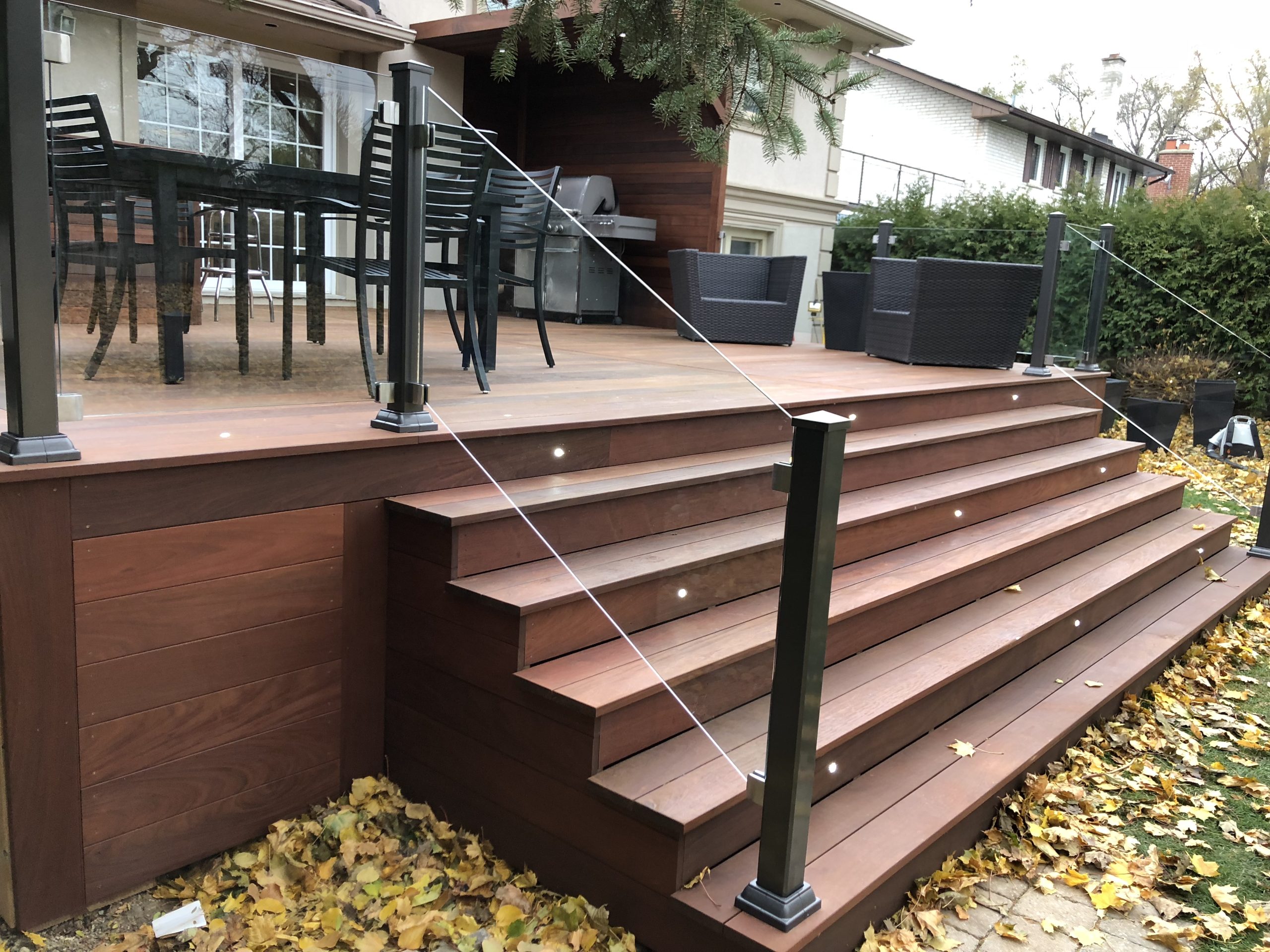 This North York property features a premium custom Ipe deck that perfectly complements the home’s architecture. Our deck contractors selected Brazilian Ipe deck for its exceptional durability in Toronto’s climate and striking natural beauty.