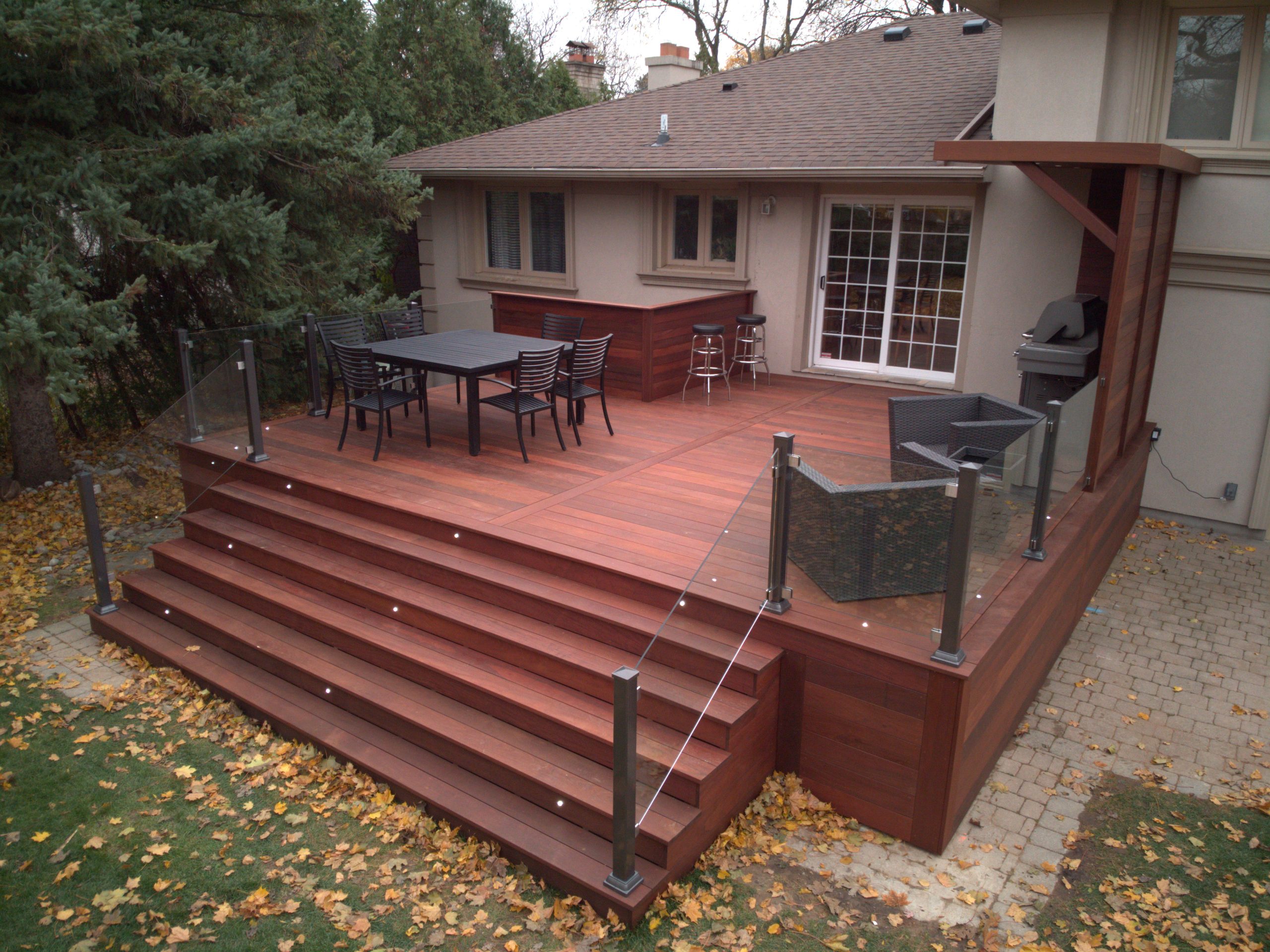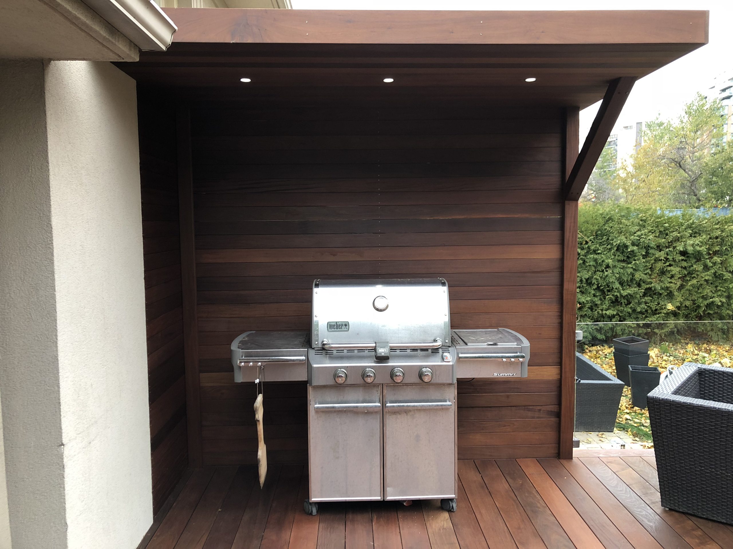 Executive Natural IPE Wood Deck with Custom Kitchen Canopy