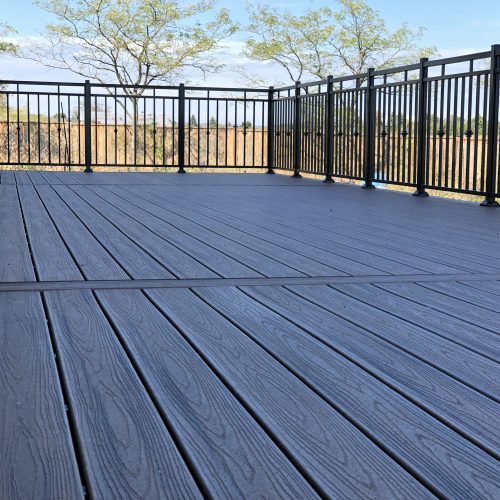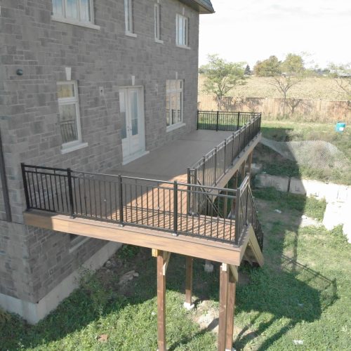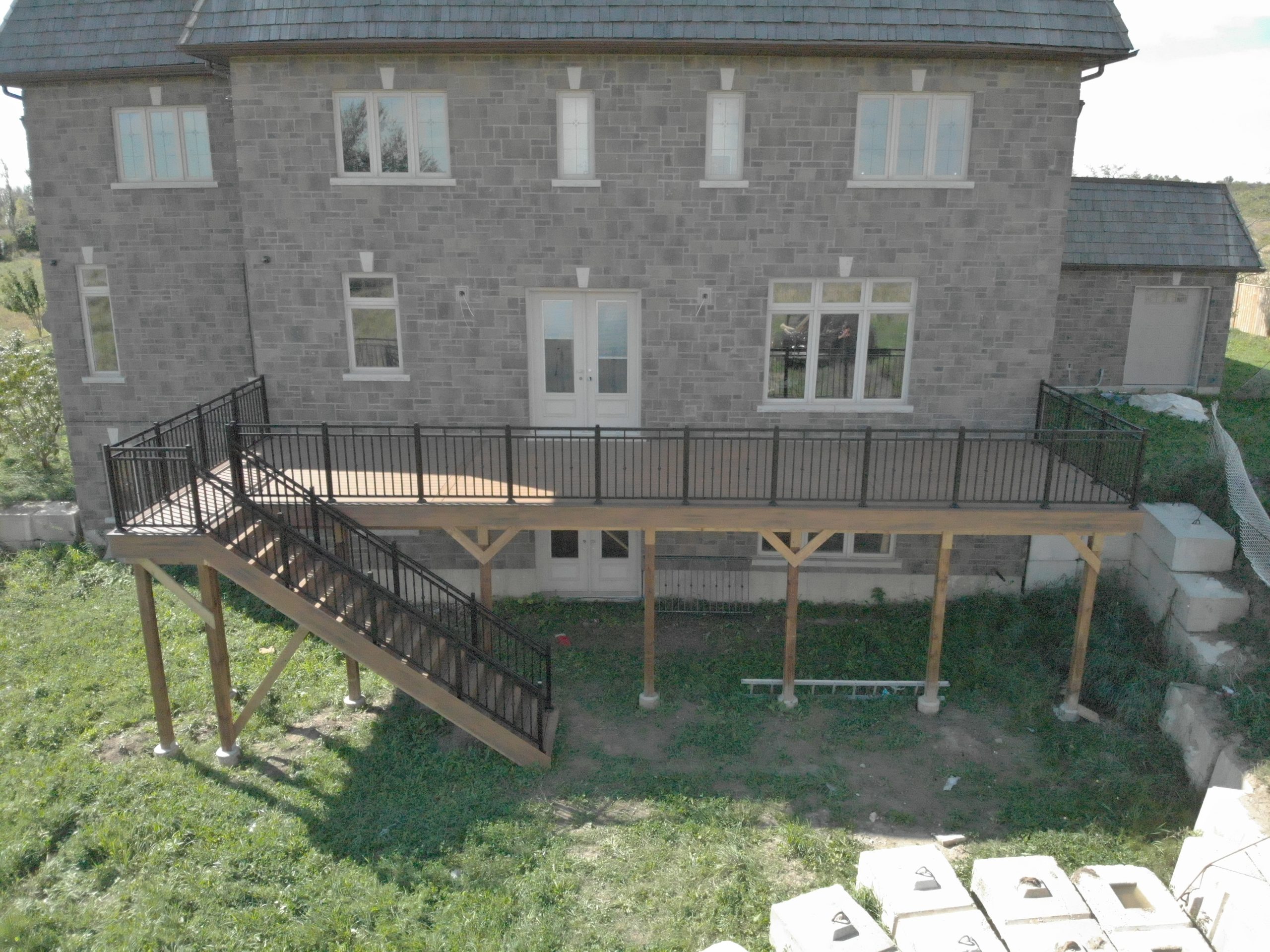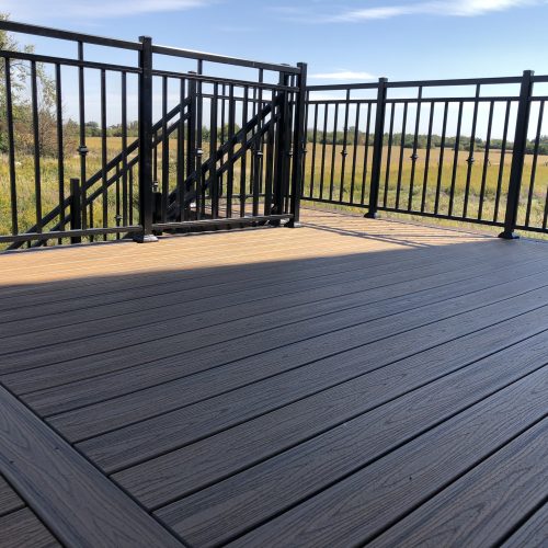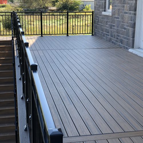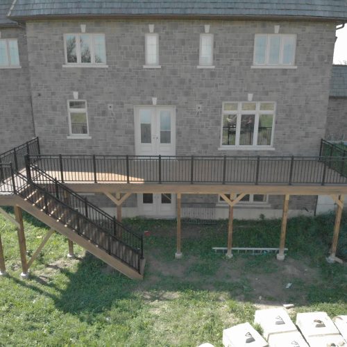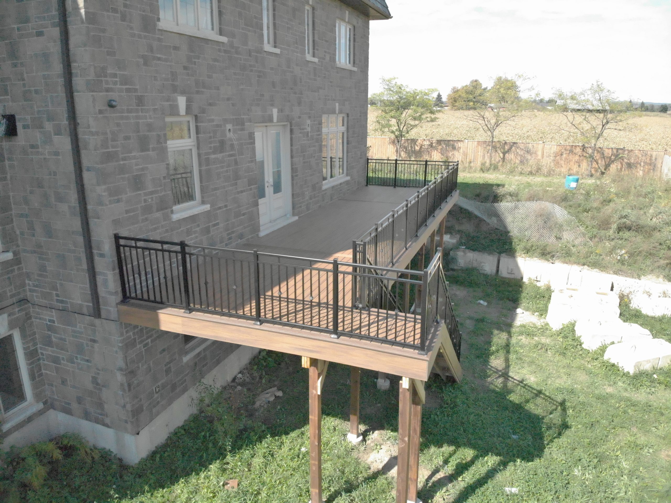 This distinctive rural Ontario residence features a thoughtfully engineered custom deck installation that creates an exceptional outdoor vantage point overlooking the surrounding countryside. Our professional deck builders designed this suspended outdoor living space to maximize panoramic views while providing seamless access from the home’s main level.