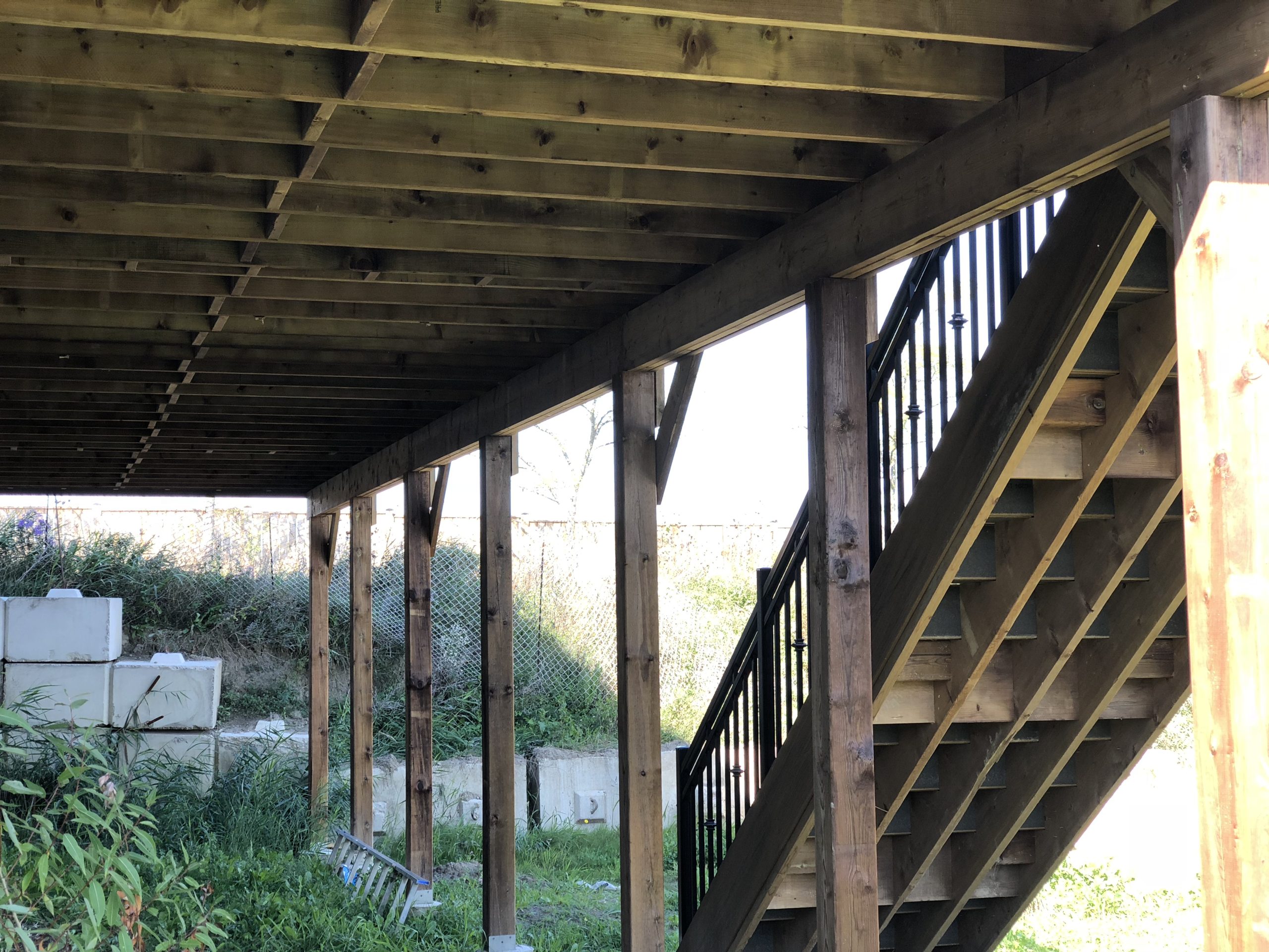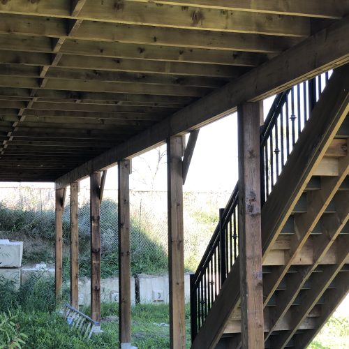 The custom deck stairs provide convenient passage to the garden level with gentle-rise treads for comfortable navigation. This deck building project exemplifies our expertise in creating architectural extensions that enhance both the property’s functionality and aesthetic appeal through thoughtful, context-appropriate design.
