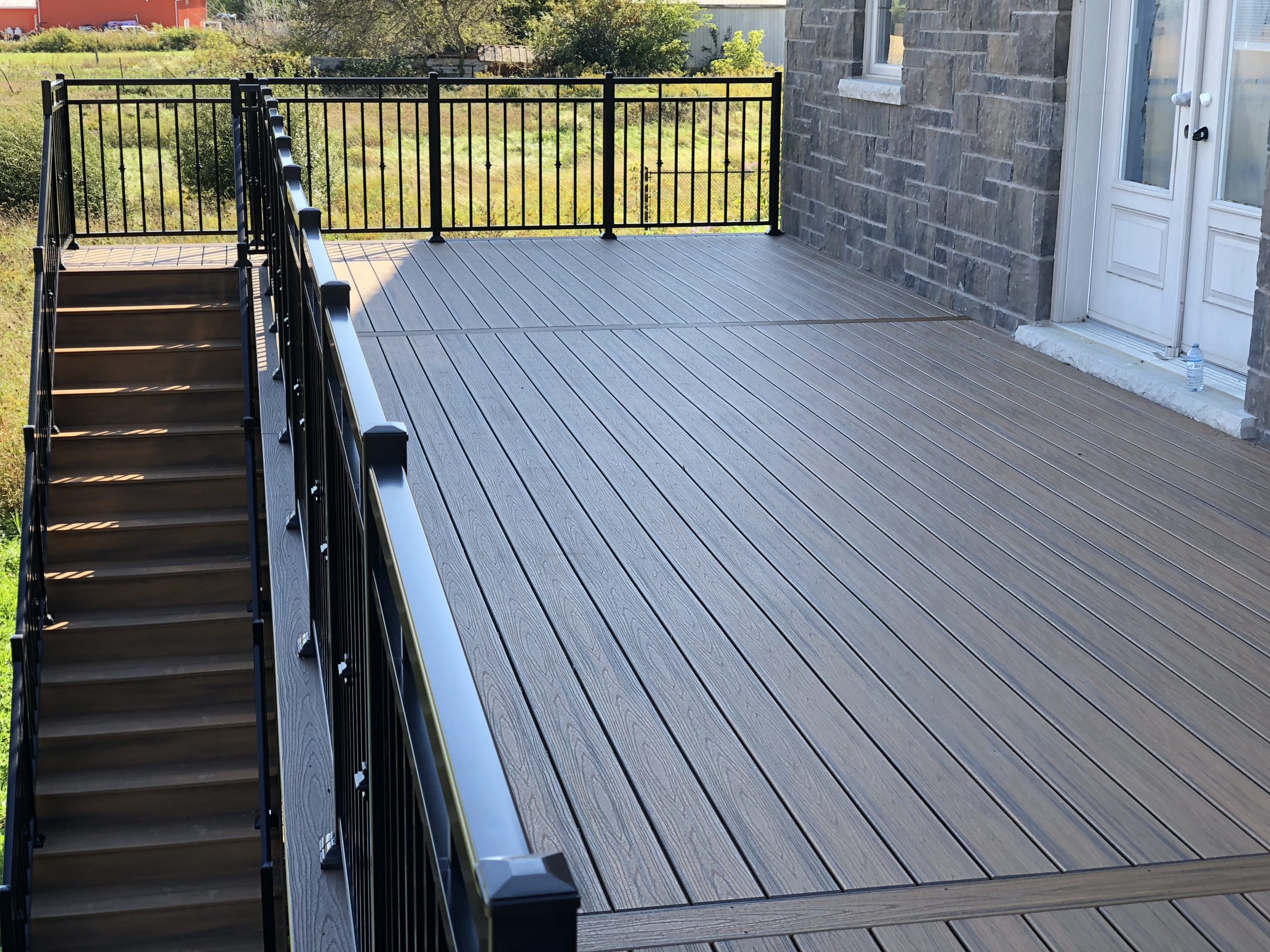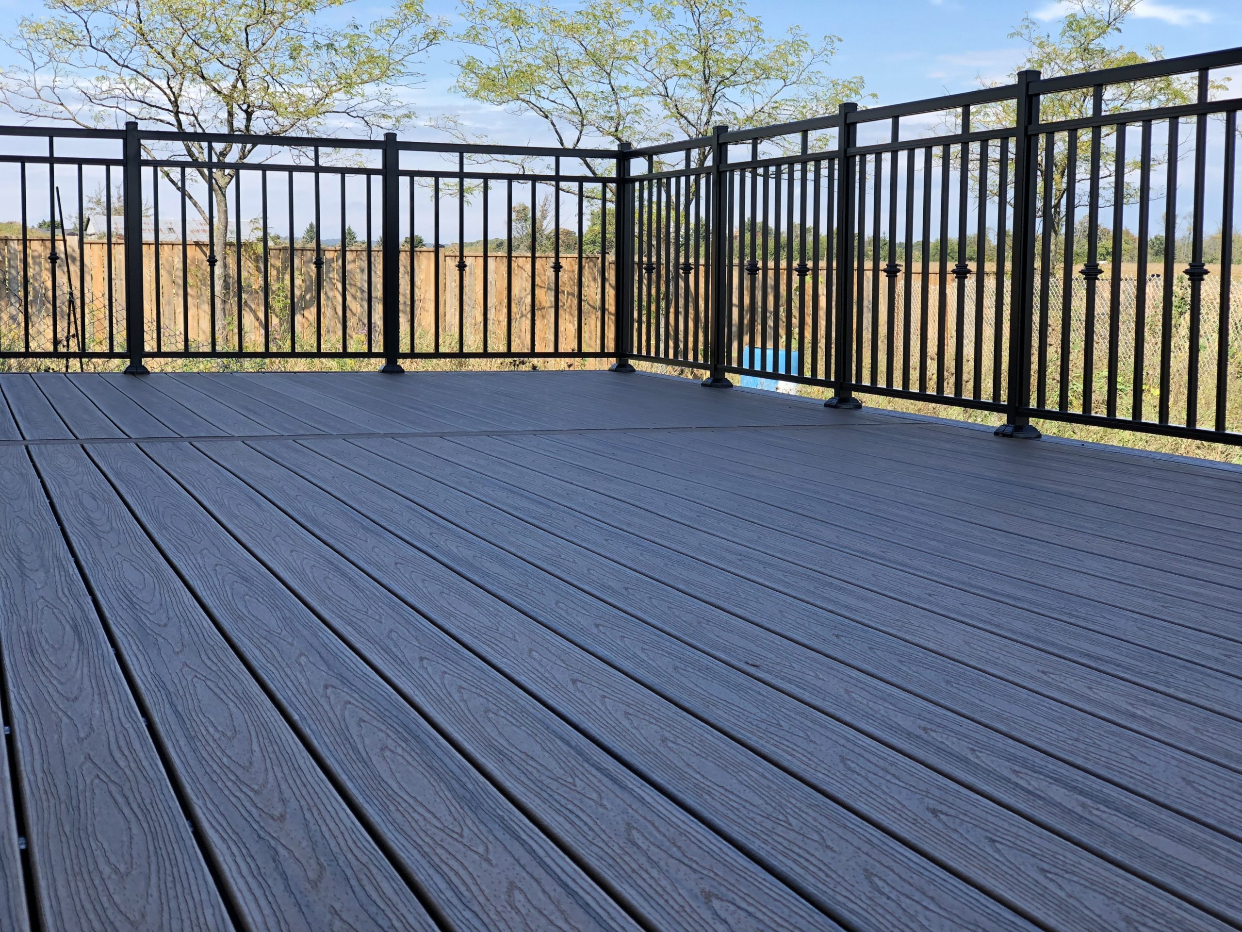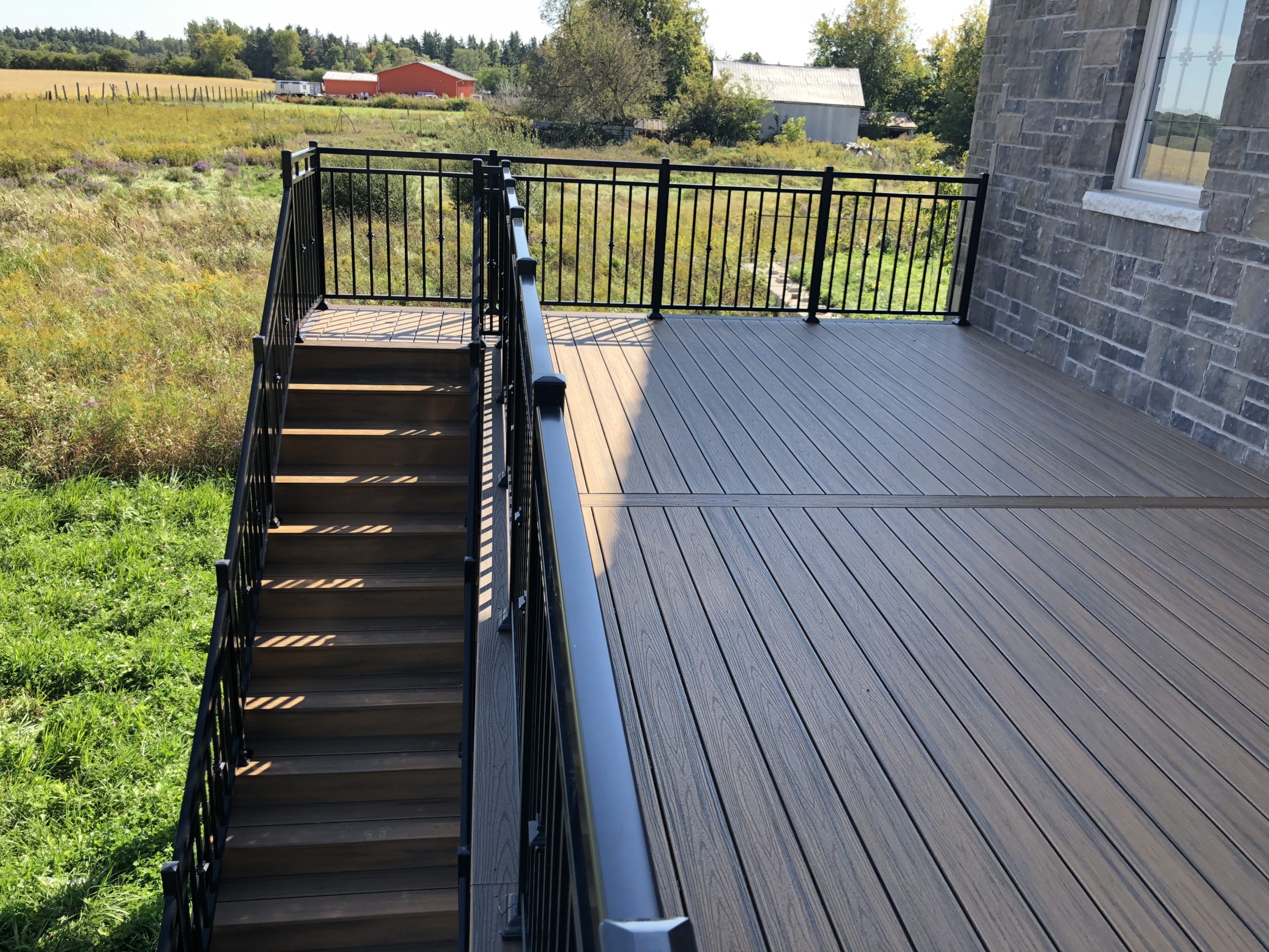 This outdoor deck transformation demonstrates our ability to create sophisticated deck designs for country properties that harmonize with both the home’s architecture and the natural landscape while meeting all provincial deck safety standards.