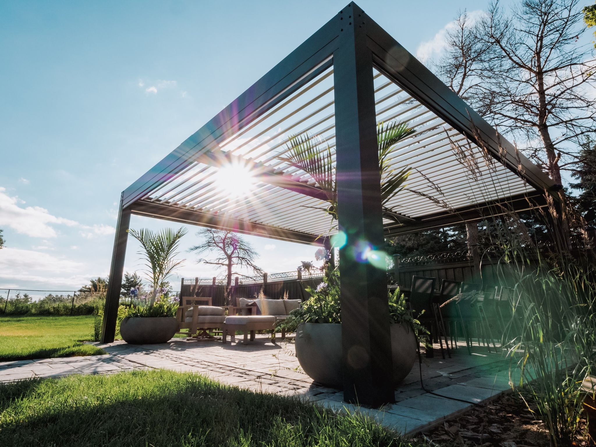Transform your outdoor space with our state-of-the-art motorized pergola systems