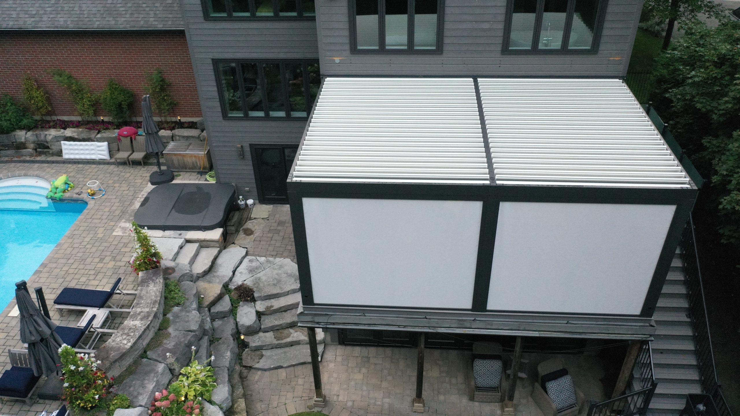 - Backyard aluminum pergola with retractable screens – Richmond Hill