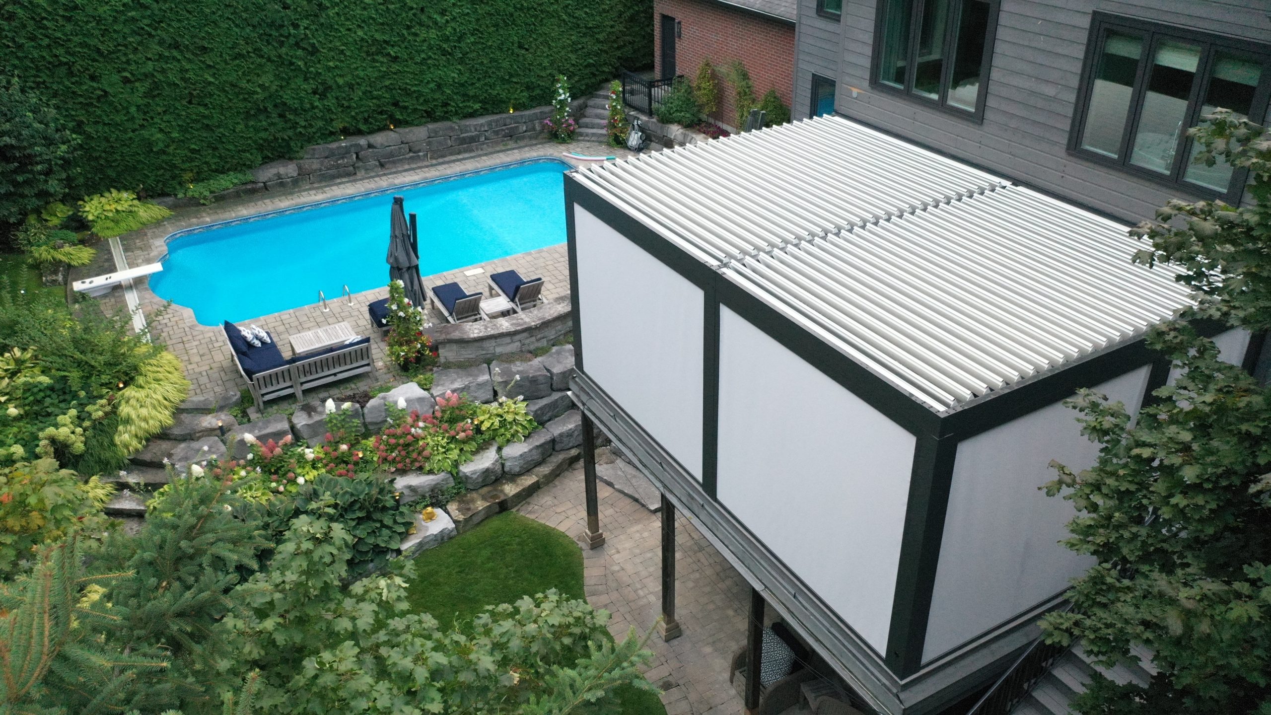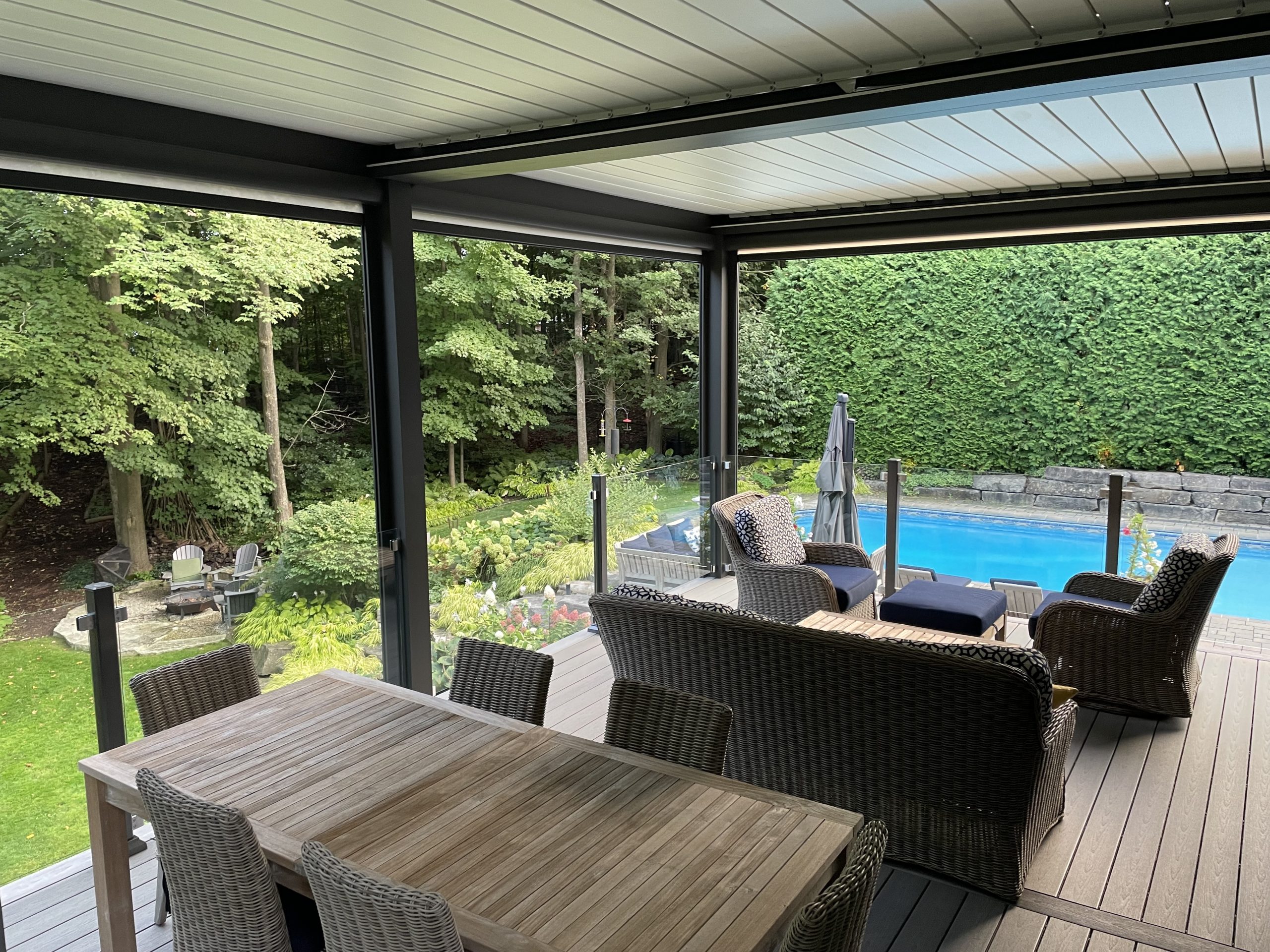 - Custom poolside pergola with smart weather controls – Toronto